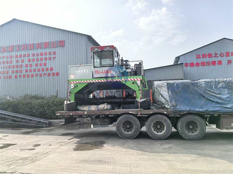 加工完成的有机肥履带翻抛机马上装车准备出发